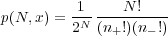 where x = n+ - n-, N = n+ + n- and so n+ = (N + x)∕2, and n- = (N - x)∕2. The probability of this occurrence is just the number of ways of realizing the occurrence divided by the total number of possible trajectories.